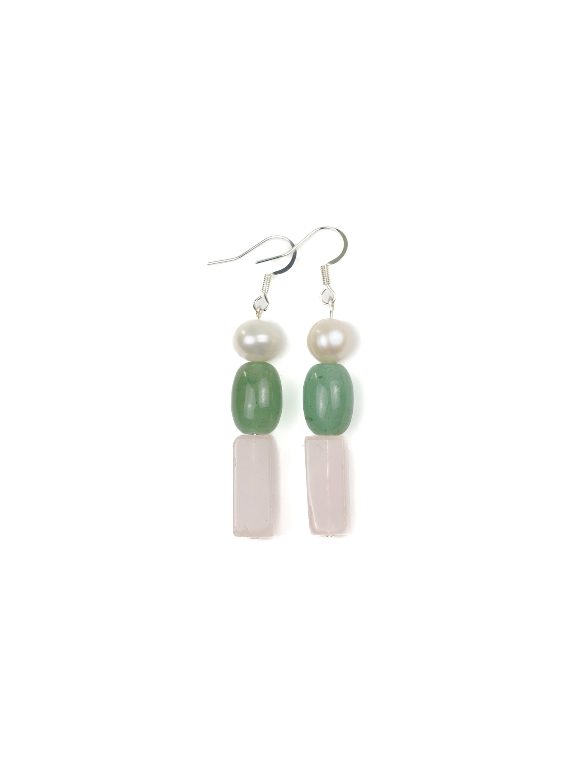 Heart Opening Earring: Rose Quartz, Aventurine, Pearl
